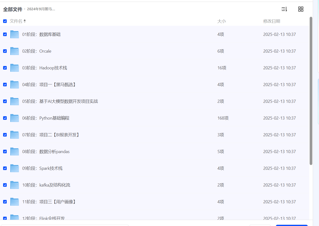 【夸克网盘】2024年9月就业班python+大数据开发V5 声明:本站所有文章,如无特殊说明或标注,均为本站原创发布。任何个人或组织,在未征得本站同意时,禁止复制、盗用、采集、发布本站内容到任何网站、书籍等各类媒体平台。如若本站内容侵犯了原著者的合法权益,可联系我们进行处理。