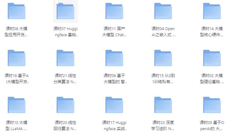 这是一个全面覆盖AI大模型理论与实战的综合性课程,内容涵盖大模型理论基础、提示词工程、OpenAI应用开发、LangChain框架、LLaMA与ChatGLM等大模型深度解析、大模型微调与部署、硬件选型与私有化部署等多个模块。